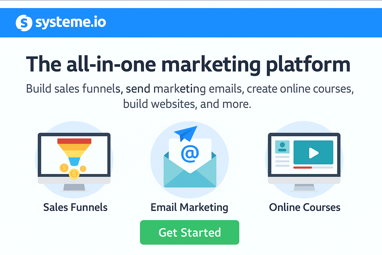 Systeme.io is an all-in-one platform designed to help people like me (and maybe you) start and grow an online business without tech headaches or complicated tools.