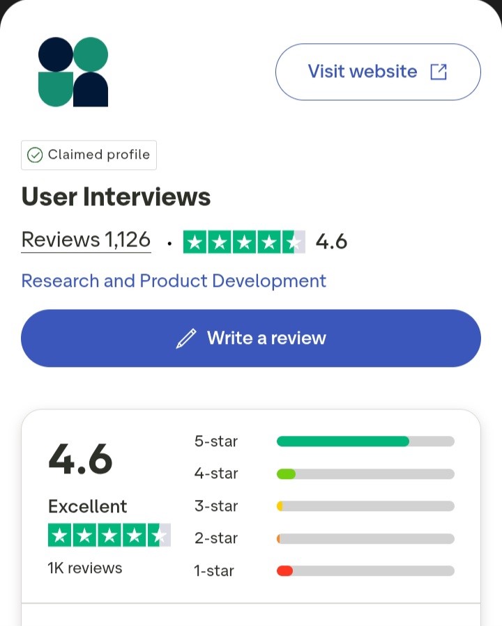 User Interviews has an excellent rating of 4.6 ⭐ on TrustPilot as of September 2025.